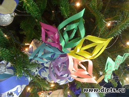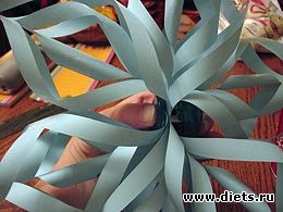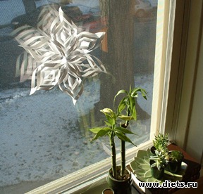 Сделать объемную снежинку из бумаги не намного сложнее, чем обычную бумажную снежинку, в то же время выглядит она гораздо эффектнее.