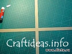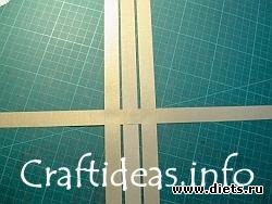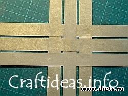 1. Возьмите две полоски и соедините их крестом (перпендикулярно друг другу) по центру. Горизонтальная полоска должна находиться над вертикальной. Склейте полоски в месте их пересечения.