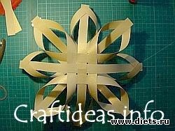 8. Аккуратно отрежьте торчашие кончики полосок на "лепесточках". Вот такая объемная снежинка из бумаги должна у вас получиться в результате.