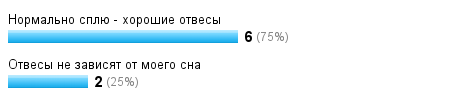 Интересно, а у вас как? Замечаете ли по себе, что если высыпаетесь - лучше худеете? Или нет такой связи, а отвесы - зависят от другого (еда и движение)?