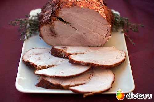 P.S. Красное на ломтике - это готовое клюквенное желе, оно очень хорошо к буженине.