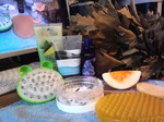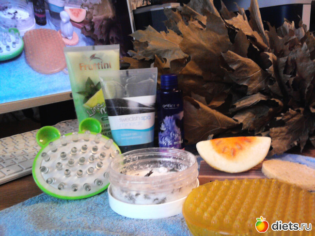 В воскресенье выбралась в баню. Понравилось, сделала себе массаж пробленых зон массажёром, солевой скраб с эфирными маслами. Веником немножко помахалась, очень хорошо!