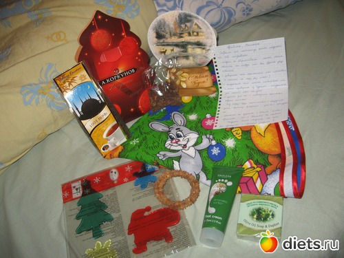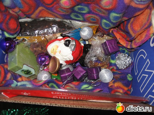 Нуууу... чтобы не томить вас перейдем к самим подарочкам, Софья такая молодец позаботилась о создании у мня новогоднего настроения!! Сразу открыв посылочку я нашла, чудный плед, мягкий, плюшевый чтоли, а в него бережно укутаны конфееетки