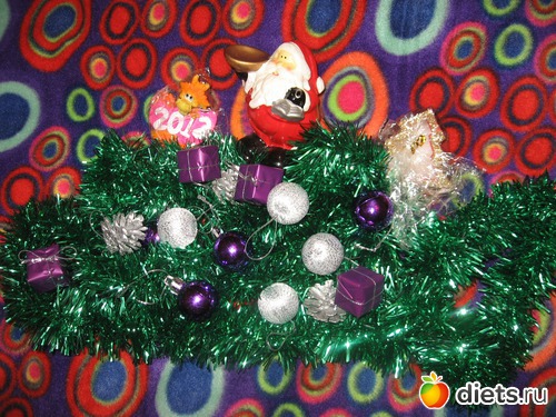 теперь у меня есть ВСЕ! и Елочка, и дед мороз, смотрите как чудно смотрятся игрушки на зеленом!! и огонек - свечка