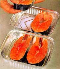 - Одну форму с рыбой поставить в микроволновку, готовить при максимальной мощности (750 ватт) 10 минут, не накрывая блюдо крышкой! Если мощность вашей микроволновки меньше – увеличьте время приготовления.