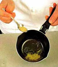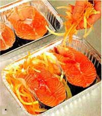 - В кастрюльке растопить сливочное масло, смешать его с перцем и солью, полить кусочки рыбы и морковь с луком (фото5).