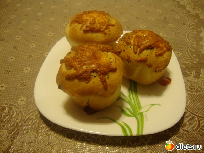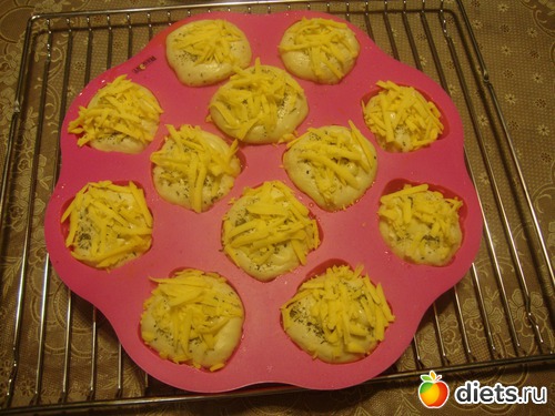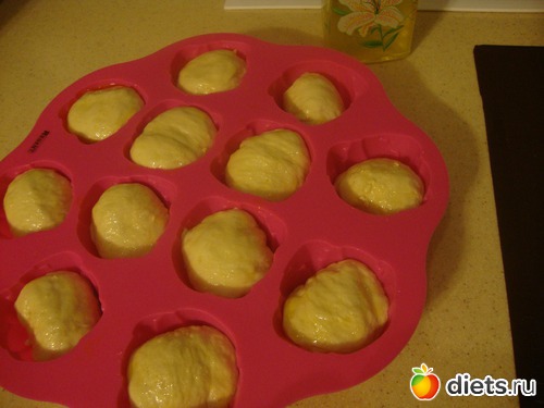 Тесто готовила в хлебопечке. Потом разделила его на 12 шариков исключительно по причине того, что в форме 12 гнёздышек.