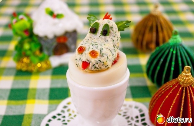 Если же вам не хочется лепить дракончиков, можно из желточной массы сформировать шарики, и выложить их на икру. Получится не менее вкусно, но не так интересно.