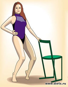 8. Немножко балета (= Берем стул. Положив руки на спинку, приседаем, медленно сгибая ноги в коленях и поднимаясь на носки.
