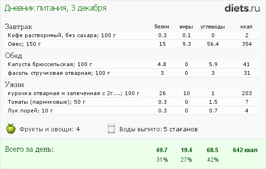 Совсем мало ккал от дневной нормы: 642 ккал при норме 1900