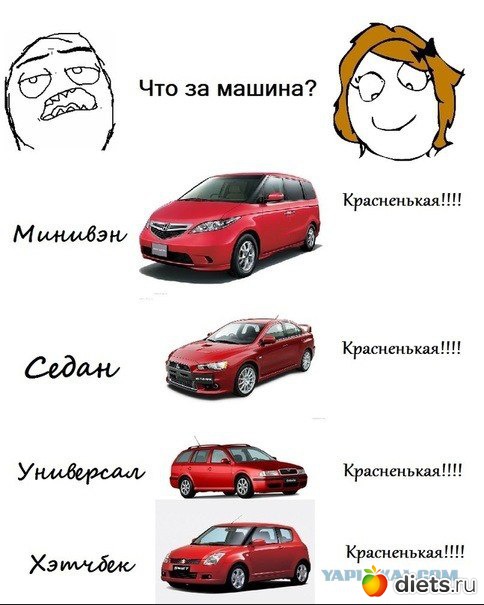 Я про машины тоже отвечала "красненькая"