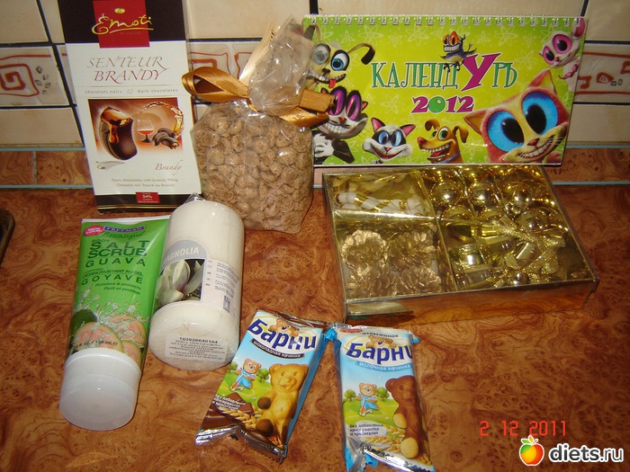 Так все понравилось. Календарь на следующий год такой прикольный, полистала-почитала, догло смеялась, очень настроение подымает. И свеча с моим любимым ароматом магнолии. И скрабик для теля, уже опробовала, такая прелесть! А еще там были такие печенюшки, называются Ночилини - такие вкусняшки, никога таких не ела. Все семейство довольно хрустело.