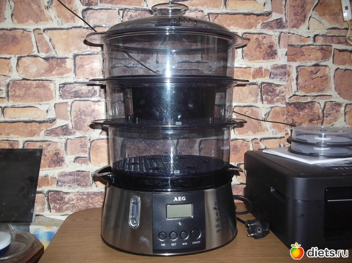 Ура, сбылась моя мечта!!! Наконец то приобрела эллипсоидный тренажерчик! Специально ждала предновогодних скидок, просматривала акции во всех спортивных магазинах и повезло! Скидочка очень даже солидная плюс бесплатная доставка на дом. Правда, привезли в разборном виде, но я так разнылась, что муженек руки в ноги и в этот же вечер мне его собрал. С утра встала пораньше, сделала разминку и оседлала своего коня. Девоньки, как же ТЯЖЕЛООО!!! Вообщем, после пяти минут ноги меня уже не слушались абсолютно. Но, настроена я решительно, буду стараться! Уж очень огромное желание скинуть эти противные килограммы, да еще и страх перед зимой. Ушла с работы, потому что забрали себе одного внука. Отправляю его утречком в школу и до трех часов дня свободна. Все дела домашние переделаю до обеда, а потом сажусь за вязание. Получается, что двигаюсь совсем мало. Надеюсь, что коник поможет справится с этой проблемкой. И еще приобрела одну ооочень нужную вещицу - пароварочку. Уже опробовали куриные фрикадельки с брокколи, получилось все очень ароматно и вкусно.