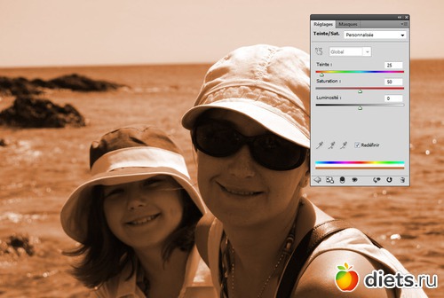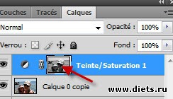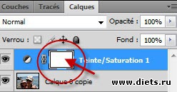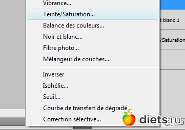 Добавить корректирующий слой (Menu> Layer> New Adjustment Layer> Hue / Saturation) или нажмите на маленькую кнопку
