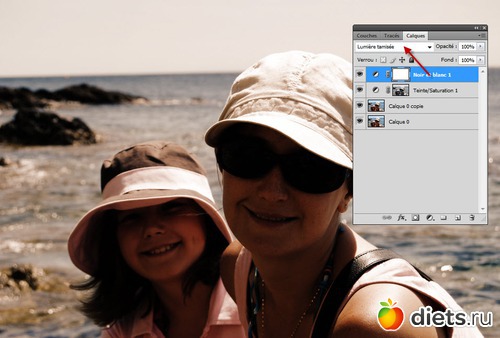 Нажмите на слой черно-белый (в белый лист (1) ) и сделаите следующие изменения (цветовой оттенок # e7ffe6)