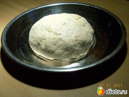 Скатать тесто в шар и выложить в смазанную маслом посуду, оставить подходить на 30 минут.