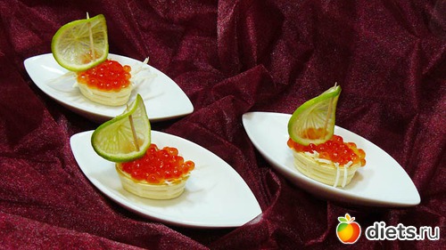 Они в них уложили морской коктейль - в итоге выбрали вилками всех креветок и прочих кальмаров, а корзиночки есть не стали!