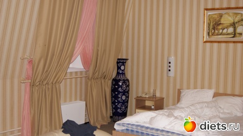 В нашем распоряжении большая кровать, ОООчень просторный номер, с Китайскими вазами по углам