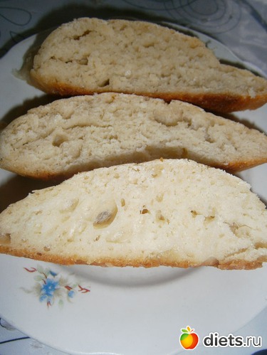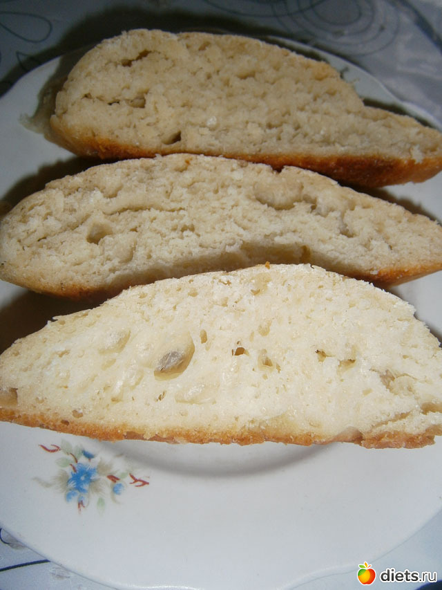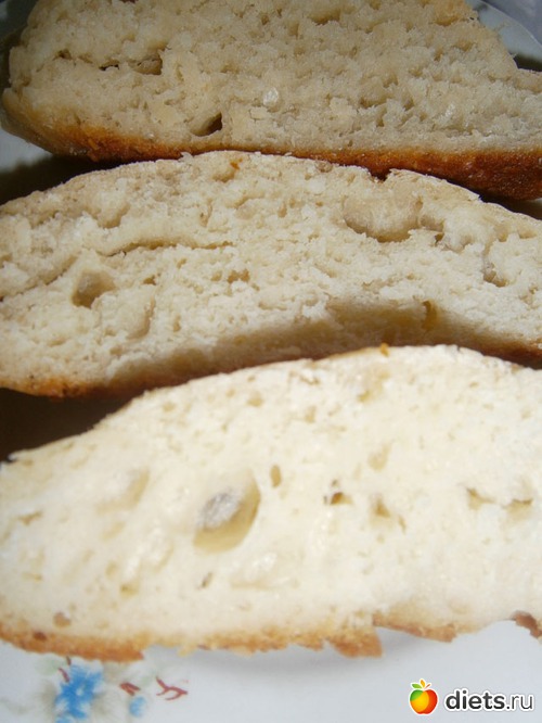 Дырочки присутствуют, тесто довольно упругое и мягкое. Процесс приготовления не сильно утомителен, так, что чиабатта вполне подойдет как альтернатива домашнему хлебу традиционной формы