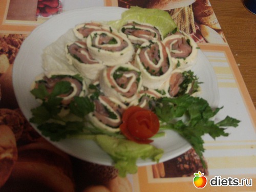 сделала рулет как я уже писала лень родилась раньше меня. По рецепту можно посмотреть по моему два поста назад. Надо натереть сыр+добавить зелень положить в пакет и опустить в горячую воду и горячий сыр быстренько раскалать скалкой. Я как представила что должна это делать мне аж поплохело. поэтому я взяла плёнку и положила 4 куска сыра который продается в пакетах такой квадратненький и положила сверху мелко порезанную зелень петрушки и зелёного лука и сверху рыбку тонко нарезанную у меня был лосось, но я думаю что можно любую малосольную рыбу, даже филе кильки подойдёт.