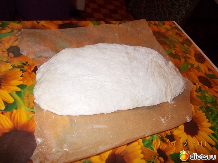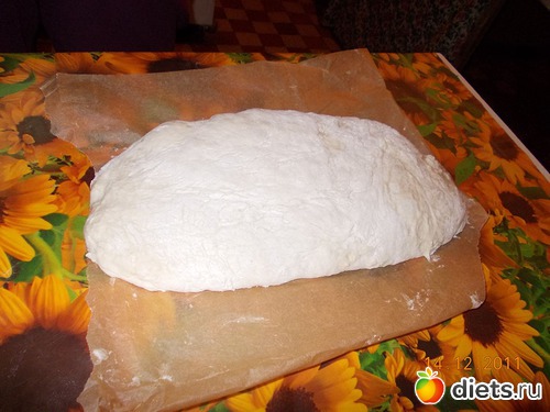 Я посыпала мукой пекарскую бумагу и на ней оставила тесто.