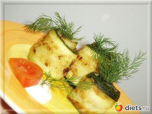 Берём цукини тщательно промываем, избавляемся от краешек(корешок и спереди пипка=))) разрезаем продольно толщиной примерно 0.5см, выкладываем всё в посуду добавляем соль, немного мнём до появления сока, оставляем, теперь, готовим соус, выжимаем майонез и выдавливаем в него чесночок, все соус готов=), затем ставим сковороду наливаем растительного масла можно оливкового, берем наши продольные посоленные кусочки цукини и обваливаем предварительно каждый кусочек в рисовой муке, обжариваем до появления хрустящей корочки и приятного цвета, выкладываем на плоское блюдо остывать. Затем, берем и промазываем каждый кусочек нашего цукини приготовленным соусом(тонким слоем!!!) сворачиваем в рулетик и всё блюдо готово!!! Безумно вкусно... всё у меня аж у самой слюнки потекли =)))