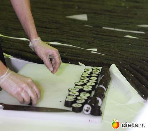 Для изготовления мега-ролла 60 поварам потребовалось около 1,5 тонны риса, 500 килограмм свежих огурцов, 14 тысяч штук водорослей нори и 25 килограммов кунжута.