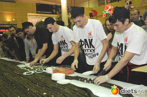 Наверное поэтому меня не оставила равнодушной событие прошедшее в Екатеринбурге, где приготовили самый длинный ролл в мире. Длина рисовой "колбаски" с огурцом составила более 2,5 километра.