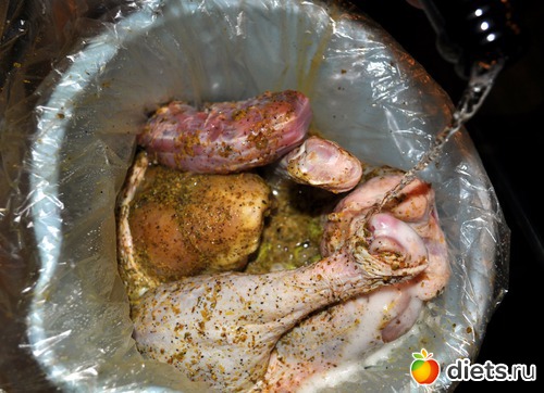 Оставить мариноваться в пакете, предварительно выжав весь воздух и закрутив пакет на 10 часов