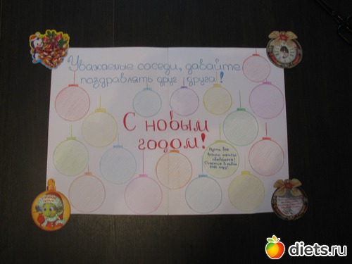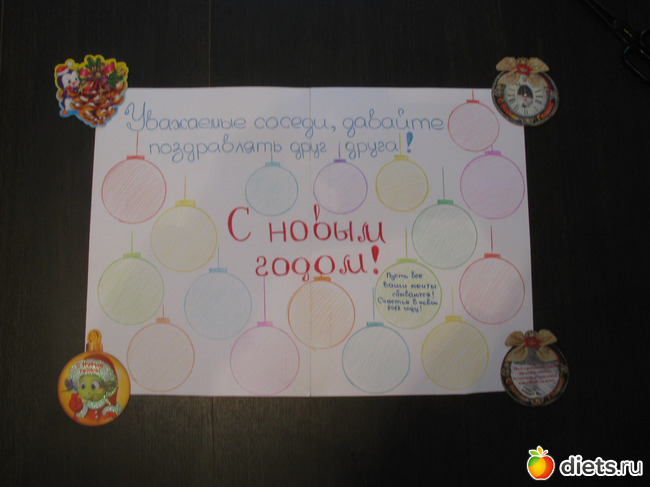 Смысл газетки в том, чтоб каждый мог в елочной игрушке написать поздравление для соседей.