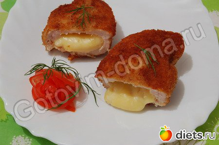 П. С. Можно сделать двойную панировку (сухари-яйцо-сухари или мука-яйцо-сухари). Так же к сыру можно добавить еще ломтики бекона и ананаса. Тоже очень вкусно и сочно!