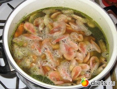 Креветки отвариваем с зеленью - аромат стоит такой, что ни один дракон не пролетит мимо