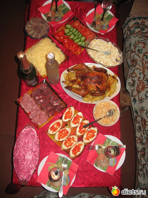 Днем 31 я сходила поздравить родителей, туда приехал брат со своей семьей, мы обменялись подарками и я пошла готовить праздничный стол.