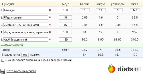 Валюш, только ты с жирностью авокадо, наверное, ошиблась. Посмотри!