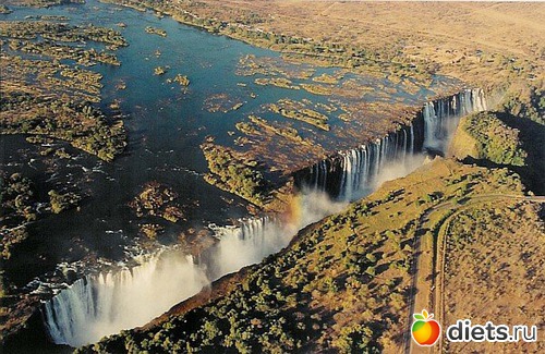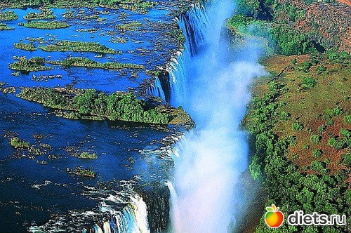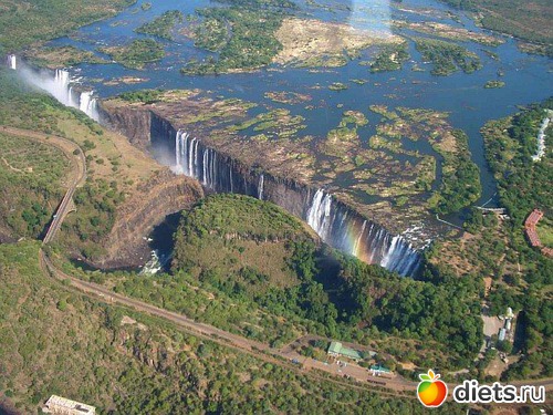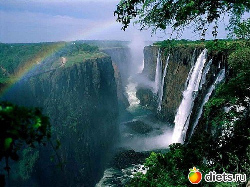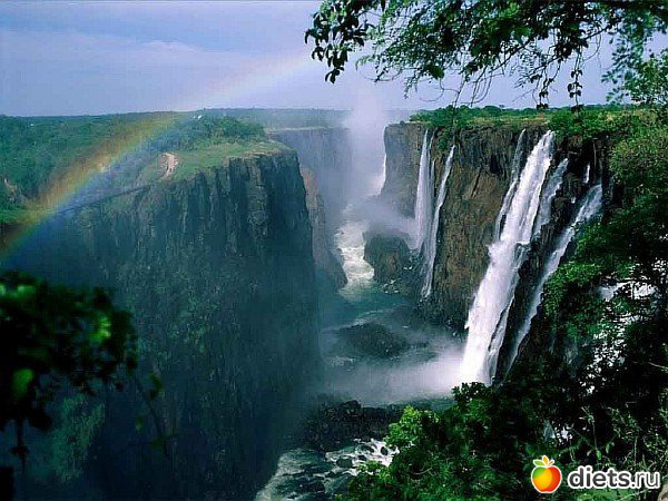 Еще один знаменитый и очень красивый водопад находится в Зимбабве – это, конечно же, водопад Виктория. Его высота – 108 метров, мощность – 1 миллион литров в секунду, а любители по-настоящему острых ощущений могут совершить затяжной прыжок с водопада на резиновой растяжке.