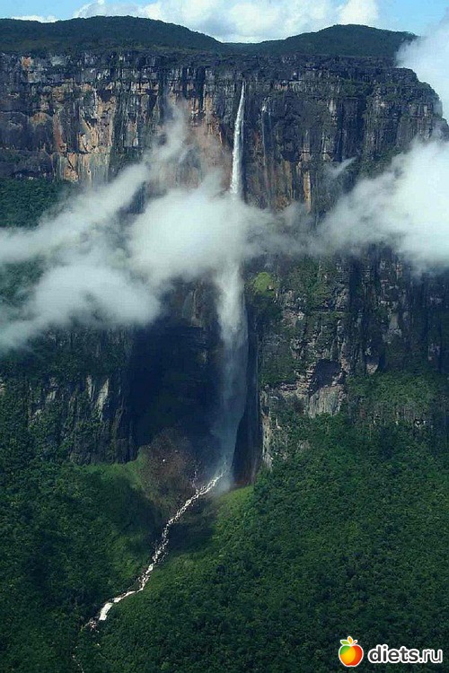 Первым в нашем списке будет водопад Ангела – самый высокий в мире. Его высота – 979 метров, что в 15 раз больше, чем высота знаменитой Ниагары. Водопад находится в Венесуэле, в национальном парке Канайма, и ежегодно тысячи туристов приезжают в страну специально, чтобы увидеть это чудо природы своими глазами, а рисковые бейс-джамперы даже прыгают с него. Водопад назван в честь американского авиатора Джимми Ангела, который, пролетая над Венесуэлой, заметил с высоты этот водопад и открыл его всему миру.