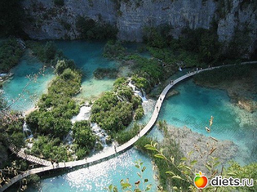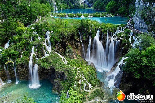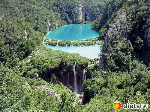 Эти удивительно красивые водопады находятся в Хорватии, в национальном парке Плитвице. Озера этого национального парка отличаются разнообразием цветов, от ярко-голубого до темно-синего, в зависимости от видов микроорганизмов, которые в них водятся. Несколько водопадов, соединяющих озера, смотрятся на фоне лазурных вод и зелени окружающих лесов просто потрясающе.