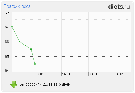 Я на диете только с 4.01.2012, а уже целых 2,5кг скинула!)