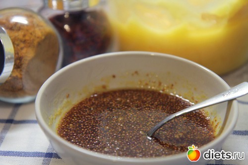 Для соуса в сотейнике растопить мед, добавить к нему имбирь, карри, кайенский перец, соевый соус и горчицу. Перемешать. Шафран залить 2 ст. л... Читать полностью
