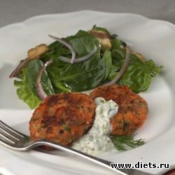 3. Добавить к лососю луковую смесь, крошки и перец. Перемешать и сформовать котлетки.