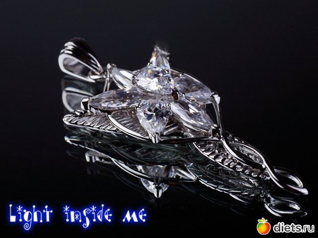 Копия эльфийского кулона Арвен из фильма "Властелин Колец", выполненная из серебра и кристаллов Сваровски. По сюжету Арвен подарила его своему возлюбленному Арагорну на удачу.