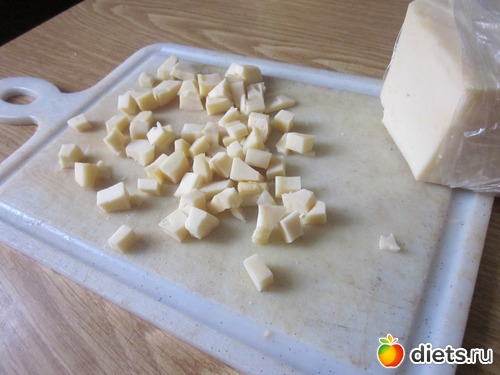 Сыр лучше нарезать помельче, подойдет любой