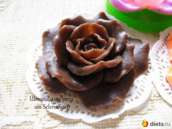 На фото представлены розы: шоколадная. С настоящим маслом какао и экстрактом зеленого чая. Розовая- с маслом лаванды и жасмина, чайная- с ароматом розы.