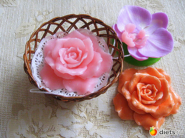 Мыло для ценителей "Цветочное блаженство" Чудесные цветы- розы и орхидеи позволят оказаться в чудесном летнем саду и порадовать себя и близких удивительными творениями)