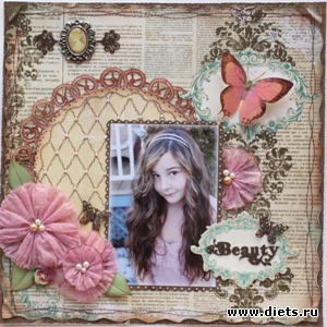 Тем, у кого в наличии больше памятных вещиц, чем фотографий, не придется беспокоиться о незанятом месте на странице – ведь пространства для заполнения не так и много. Для скрапперов, которые любят творить, но получают больше удовольствия от результата, чем от процесса, либо лимитированы во времени, такую страничку создать намного быстрее и проще, чем целую 30х30. Хотя размер А4 кажется достаточно «нескраповым» форматом, многие опытные мастерицы, в том числе зарубежные, придерживаются именно этого формата.