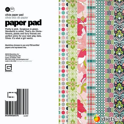 Набор бумаги для скрапбукинга 15х15 см Olivia от BasicGrey