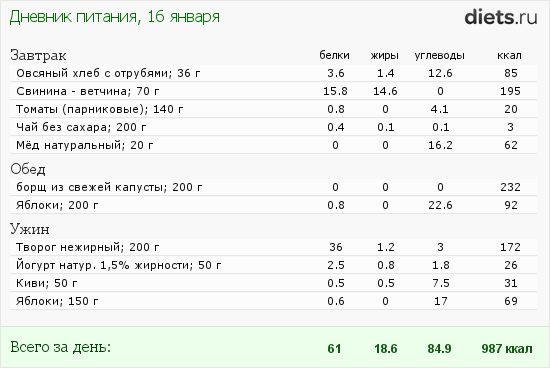 Diets.ru рацион на 16.01