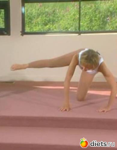 5. Еще одно упражнение, знакомое по БФ. Обратите внимание на стопы, носки "смотрят" вперед. Тянется внешняя поверхность бедра, убираем "галифе". Ноги меняем.