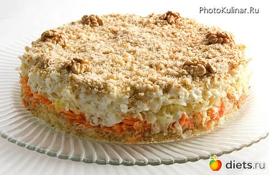 Салат впечатляет своей красотой и торжественностью. А вот на вкус не похож на наши традиционные праздничные салаты