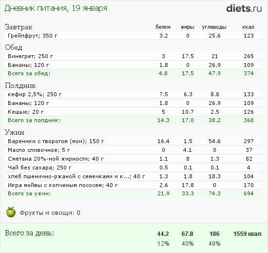 Думаю, что день все-таки углеводный получился, хотя, блин, жиров многовато
